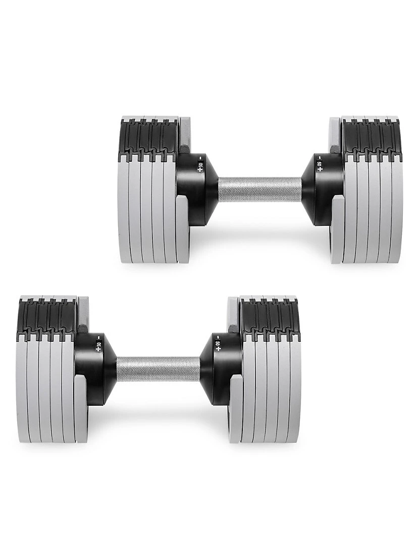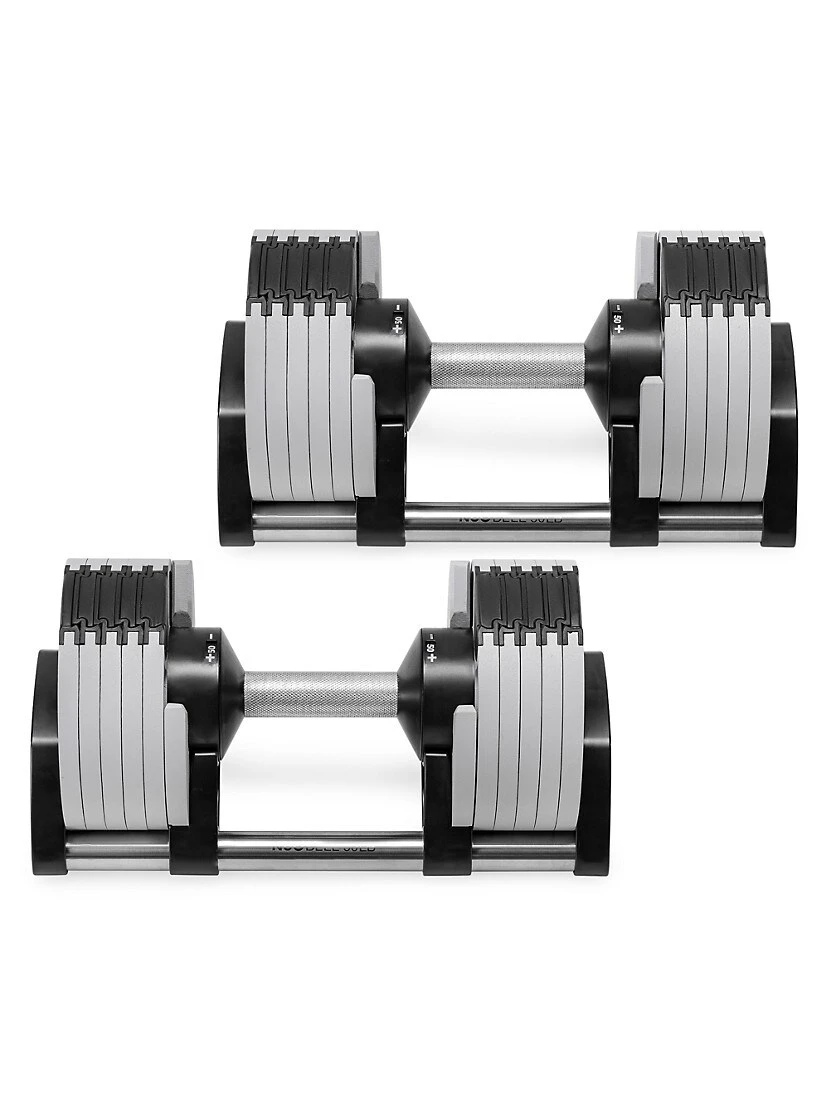 From the NÜOBELL Collection. Convenient all-in-one adjustable 5-50 lbs. dumbbells that are easy to use and have superior durability thanks to its machined steel weight plates. This set of innovative dumbbells will quickly become go to favorite.