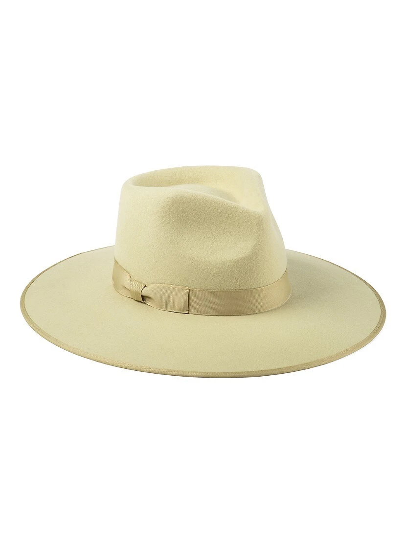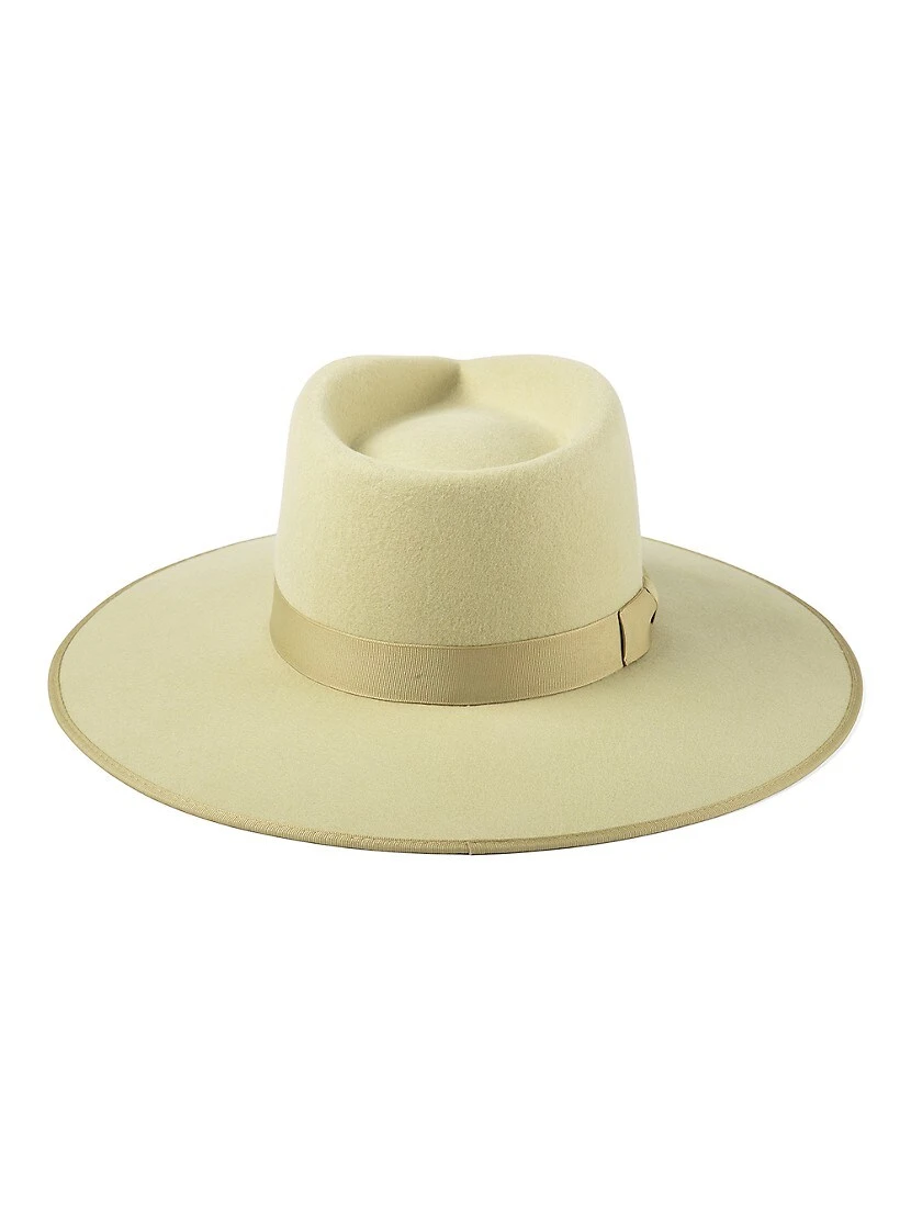 The Pistacho Rancher hat from Lack of Color is crafted of luxe Australian wool and finished with ribbon trim.