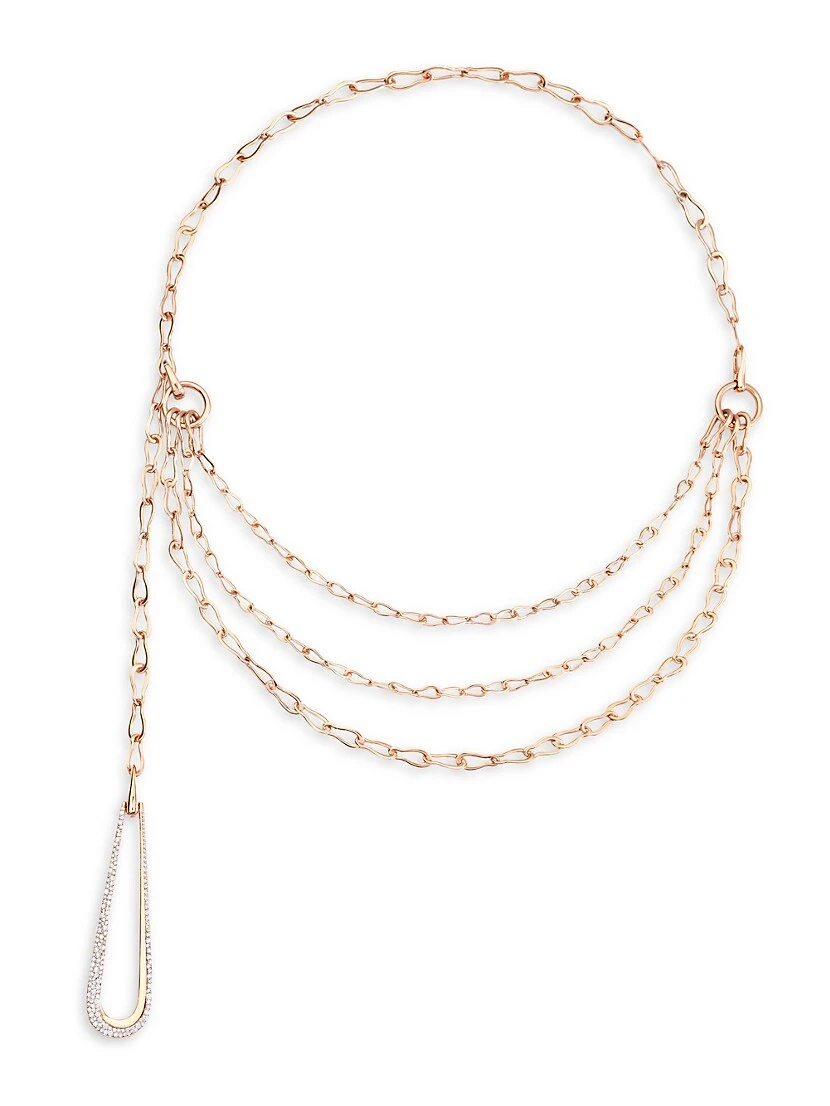 From the Fantina Collection. Layered rose gold chains suspend a diamond pavé teardrop in this elegant collar necklace.