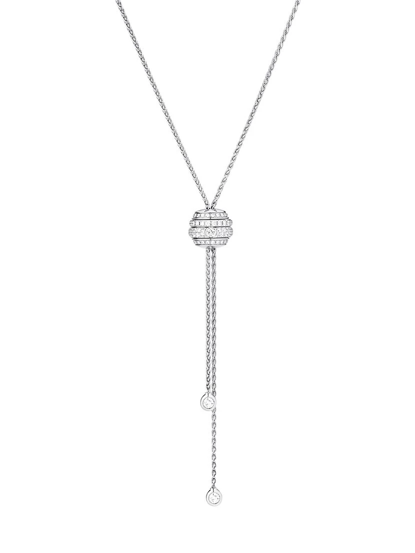 From the Possession Collection. Inspired by the Possession turning ring, this playful and very elegant pendant slides up and down its chain. It features a fully paved central ring that turns on itself. It can be worn long or short, symmetrically or asymmetrically.