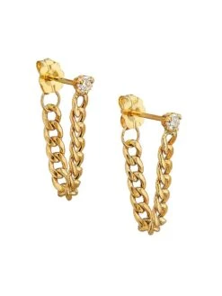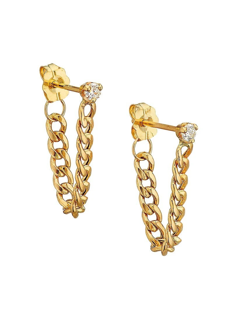From the Prong Diamonds Collection. Handcrafted of polished 14K yellow gold, Zoë Chicco’s dainty curb-chain earrings sparkle with round brilliant-cut diamonds.