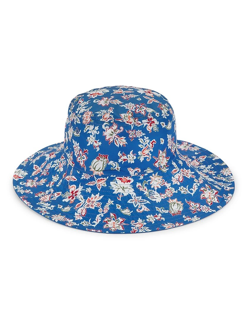 - Floral print reverses to blue
