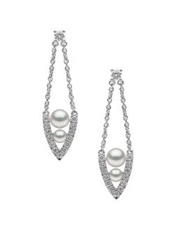 From the Sleek Collection. Bold yet lightweight design in a chain curve silhouette of 18K white gold lined with diamond pavé, set with two pearls.