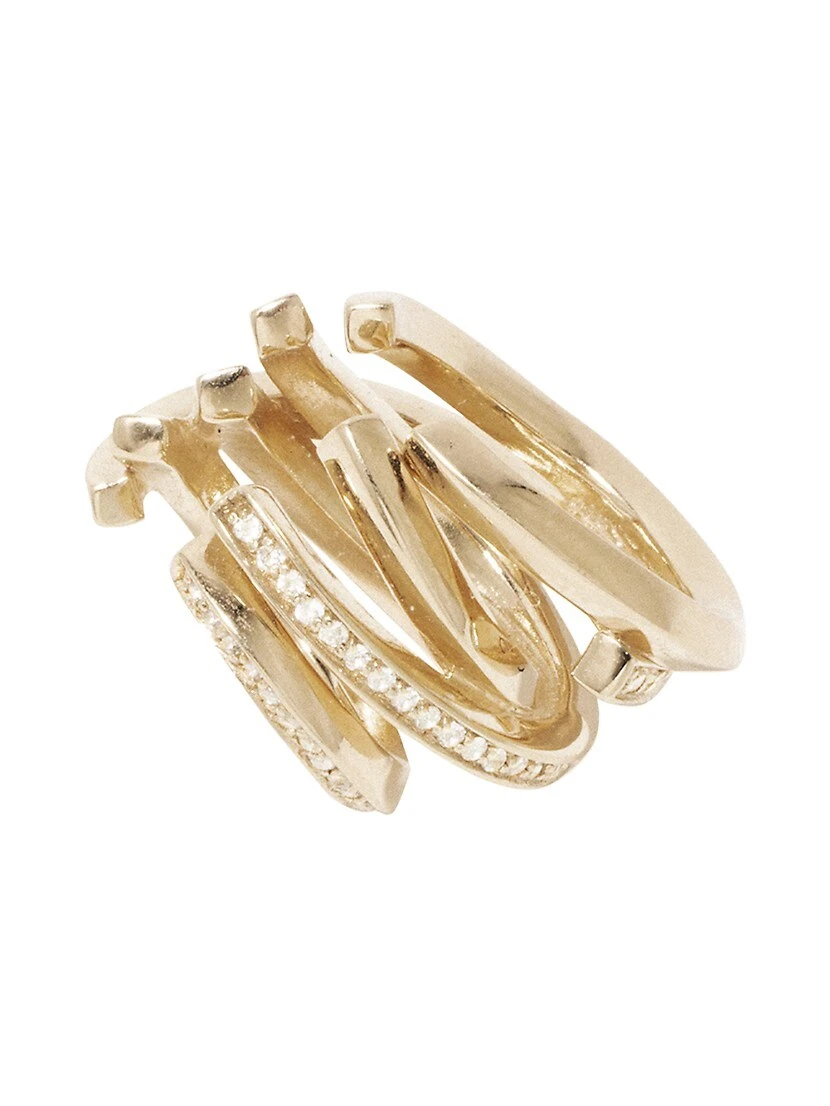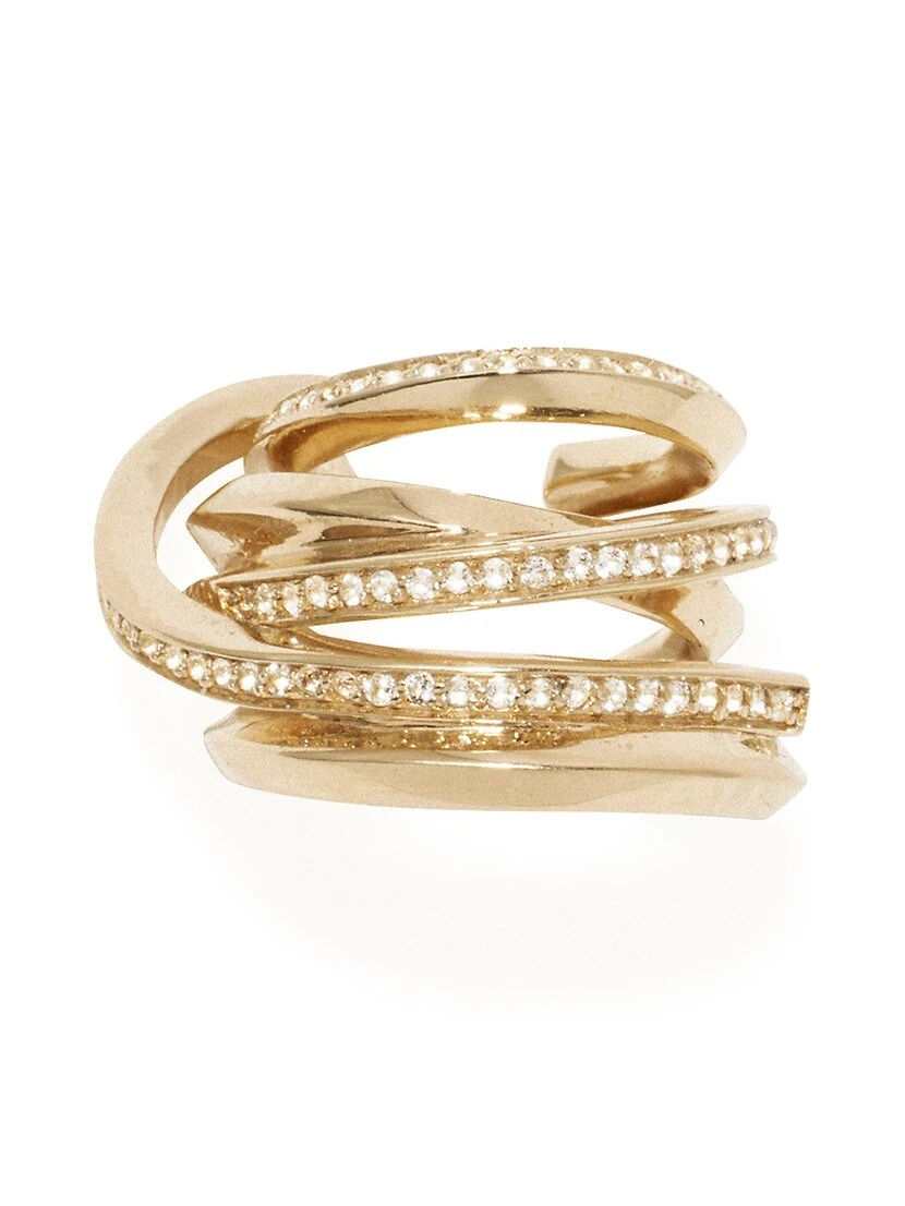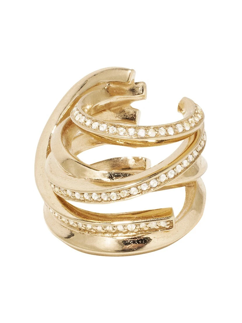 From the Suburbs Collection. Completed Works’ Suburbs The Day The Cactus Bloomed ear cuff has an open spiral shape designed to wraparound the ear, adorned with glittering white topaz pavé.