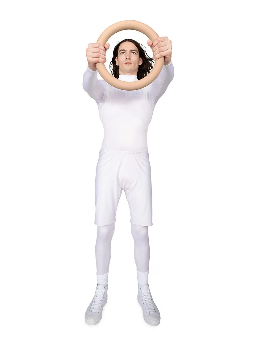 The Power Ring by Bala is a kettlebell and a dumbbell in one. This piece is designed to increase strength, agility, endurance, and balance.