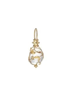 From the Tree of Life Collection. Graceful vines of polished and brushed 18k gold, blossoming with diamonds and granulated dots, trellis a teardrop rock crystal amulet.
